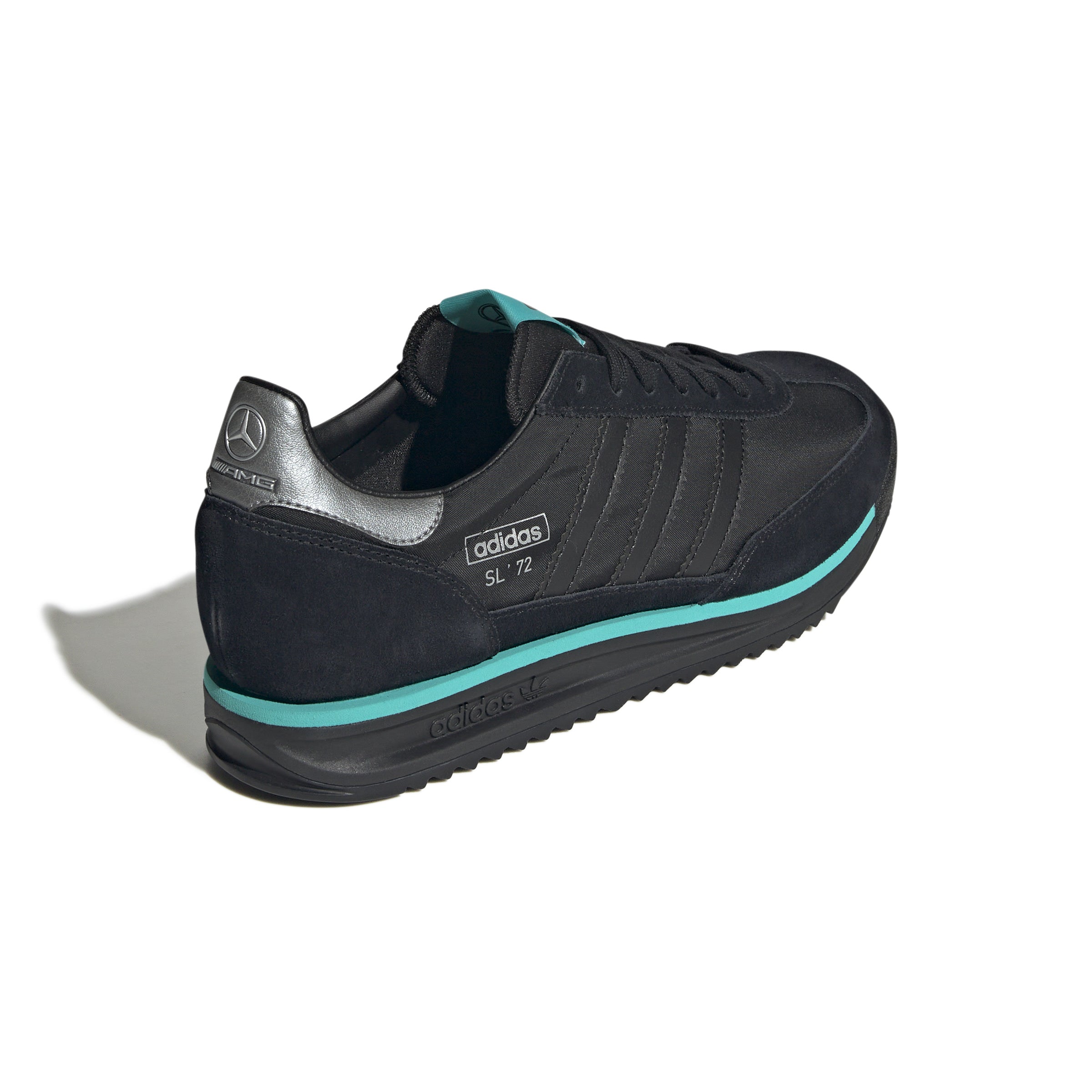 Since 1972, the adidas SL 72 shoes have been making their mark on the world of running. Now, they've teamed up with the Mercedes - AMG Petronas Formula One Team. The nylon upper has soft suede overlays that create a vintage look, while an EVA midsole and ripple rubber outsole grip the ground and cushion your every step. Whether you're hitting the track or the streets, these shoes are built to go the distance.
